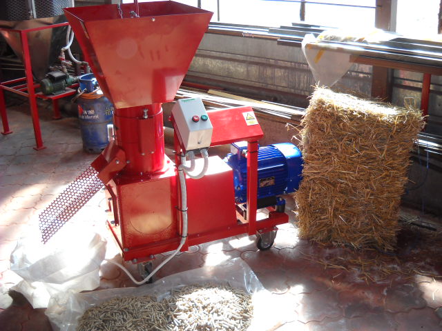 Varianta a : MFPL 100 putere instalata 7.5 kw , capacitate 80 - 100 kg / ora Varianta a : MFPL 250 putere instalata 15 kw , capacitate 150 - 200 kg / ora Varianta b : MFPL 400 putere instalata 22.5kw , capacitate 400 kg / ora Se produc peleti pentru foc si furaje (materia prima poate fi masa paioasa) Diametrul standard este de 6 mm (pt.centrale automate).La comanda se pot executa matrite pentru peleti cu diametre cuprinse intre 3 mm si 12 mm pentru utilajele comandate. MATERIALELE DIN CARE SE POT OBTINE PELETI TREBUIE SA INDEPLINEASCA URMATOARELE : 1.SA RESPECTE O ANUMITA GRANULATIE (SA FIE TOCATE / GRANULATE) 2.SA RESPECTE O ANUMITA UMIDITATE EXEMPLE DE MATERIALE DIN CARE SE POT OBTINE PELETI : Resturi vegetale , biomasa ( masa vegetala ) ( din aceasta categorie fac parte masa lemnoasa - rumegus , talas , crengi , paie , cereale de orice tip , iarba , frunze ) Nota : rumegusul / biomasa pentru peletizat trebuie sa aibe dimensiunea cu 2 milimetri mai mica decat peletii care vor sa se obtina (EX : rumegus = 4 mm rezulta peleti de 6 mm ) Utilajele produse de societatea noastra sunt de sine statatoare si pot fi comandate separat . Masinile de peleti sunt dotate cu sistem de hidratare antiblocaj . Nu este necesara combinarea materialului de peletizat cu lianti sau alte produse