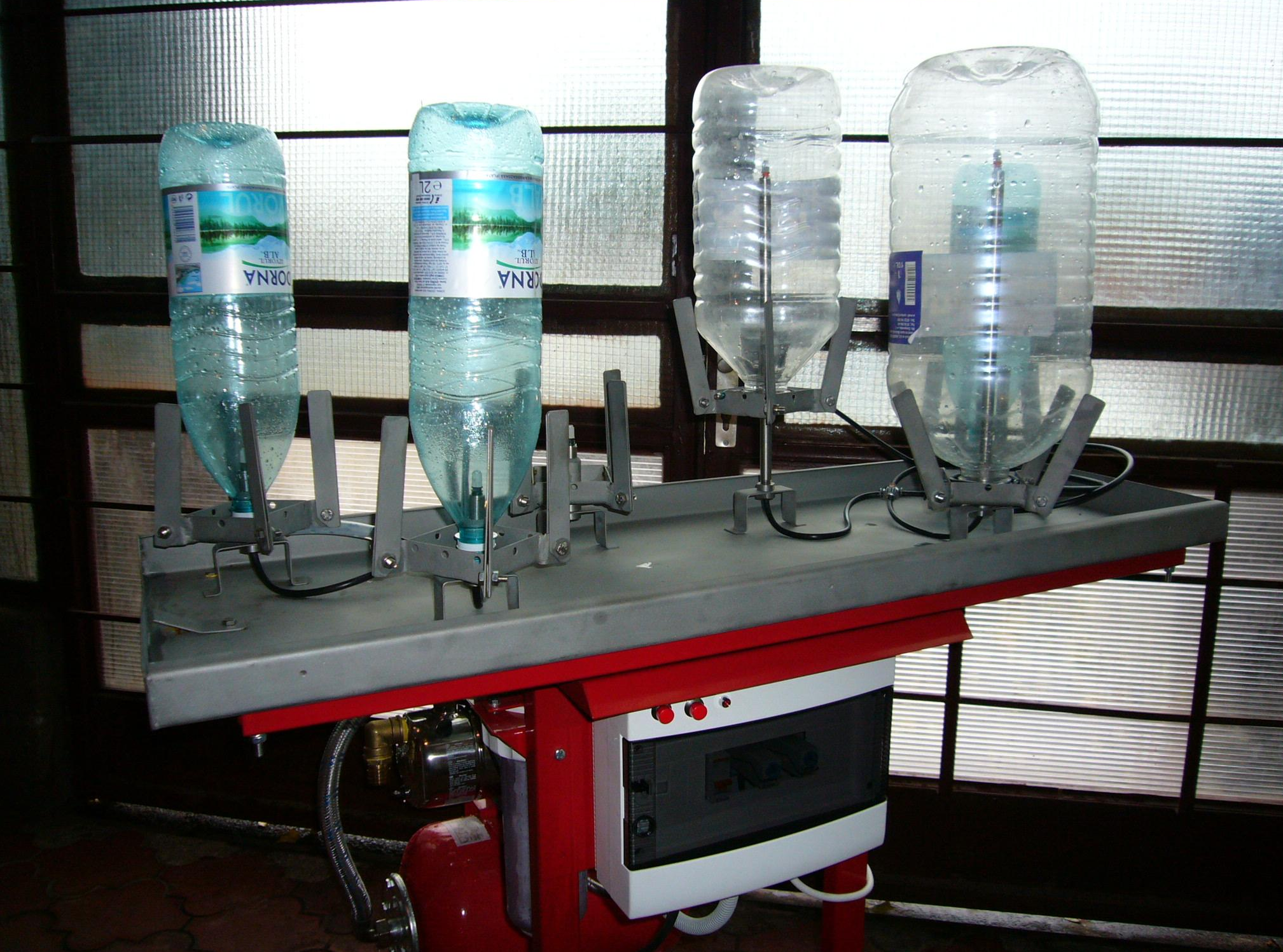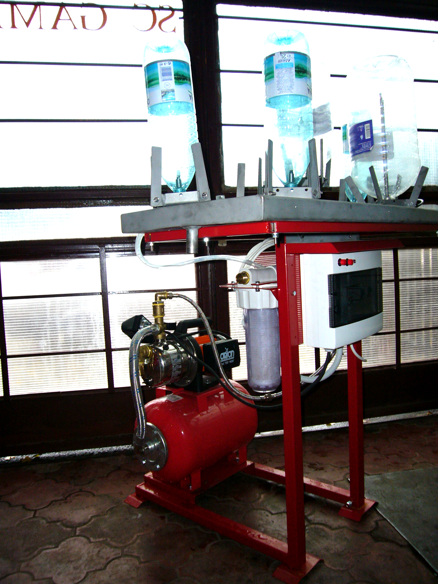 < Componenta: 1.Instalatie de dezinfectat si clatit recipiente 2.Instalatie imbuteliere cu capsator 3.Dispozitiv etichetat 4.Masina baxat Sistemul lucreaza in regim semiautomat Acest sistem este destinat imbutelierii si ambalarii : apa plata , sucuri neacidulate , ulei comestibil si tehnic, otet, bors- LICHIDE NEACIDULATE SI NESPUMANTE NOTA : Pentru sucuri si apa plata dezinfectarea si spalarea recipientelor inainte de imbuteliere este obligatorie prin lege. Pentru uleiuri nu este obligatorie clatirea si spalarea recipientelor Productivitate imbuteliere 400 - 800 litri /h Putere instalata totala sistem aprox. 12 kW Baxare 60 -70 baxuri /h Suprafata necesara totala sistem aprox. 16 mp Automatizari sistem : 1.Timpul de tratare si de dezinfectare 2.Timpul de clatire 3.Timpul de umplere si dozare pentru imbuteliere optima 4.Temperatura de baxare 4.Timpul de taiere si lipire bax 5.Intrarea si iesirea baxului din cuptor